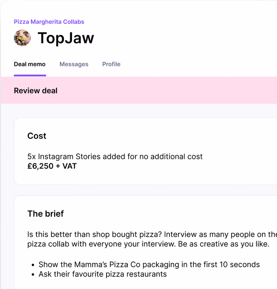 Everything in our system is built for speed. We have seen agencies go from an initial brief to a locked-in creator price in as little as 10 minutes.