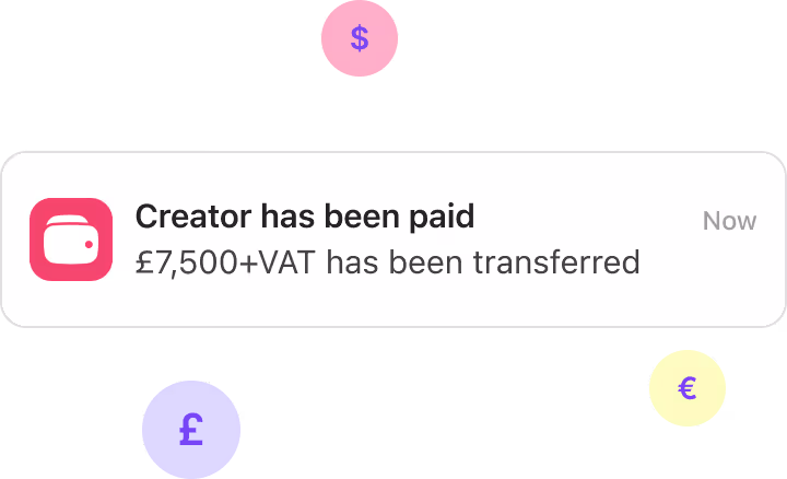 Stop chasing bank details for 50 different creators. CreatorOS acts as the single point of payment, managing all disbursements and tax compliance so your finance team stays happy.