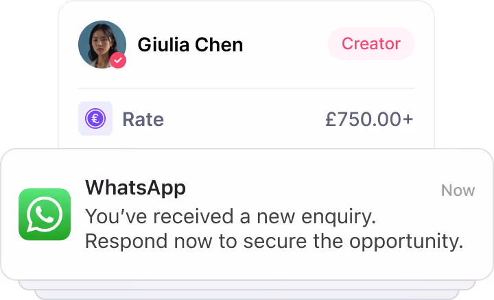 Build a professional presence brands trust, respond instantly, and price your work using real market benchmarks, so every opportunity starts on solid ground.
